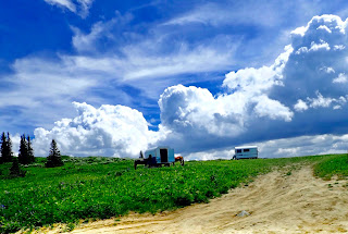Arrived Blanding, Utah. Just as we finished setting up camp in the Blanding RV Park, a huge thunder storm passed through. We didn't mind, the rain would help control the dust during our trail riding.